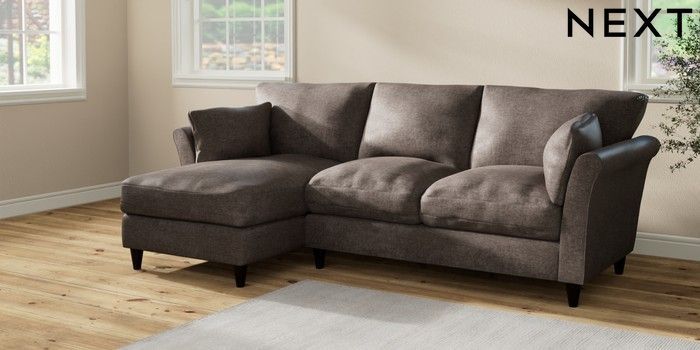 7.2.10 Hartley Relaxed Sit Medium Sofa Chaise - Left Hand Plush Chenille Mink Brown Low Conical - Dark | Made Click here to use our website with more accessibility support, for example screen readers