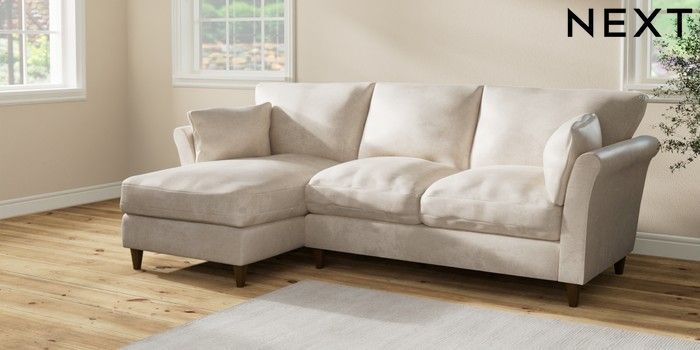 7.2.10 Hartley Relaxed Sit Medium Sofa Chaise - Left Hand Plush Chenille Oyster Low Conical - Mid | Made Click here to use our website with more accessibility support, for example screen readers