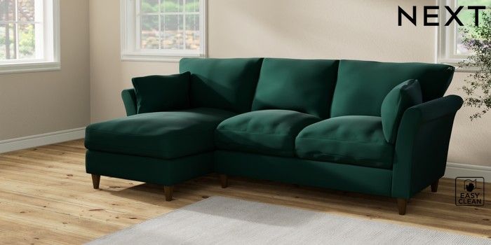7.2.10 Hartley Relaxed Sit Medium Sofa Chaise - Left Hand Plush Velvet Easy Clean Bottle Green Low Conical - Mid | Made Click here to use our website with more accessibility support, for example screen readers