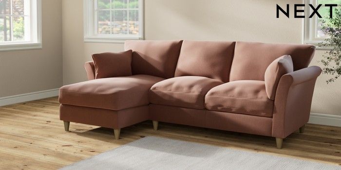 7.2.10 Hartley Relaxed Sit Medium Sofa Chaise - Left Hand Relaxed Linen Look Light Rust Brown Low Conical - Light | Made Click here to use our website with more accessibility support, for example screen readers