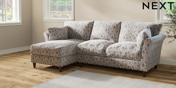 7.2.10 Hartley Relaxed Sit Medium Sofa Chaise - Left Hand Relaxed Linen Look Print Woodblock Floral Blue Low Conical - Mid | Made Click here to use our website with more accessibility support, for example screen readers