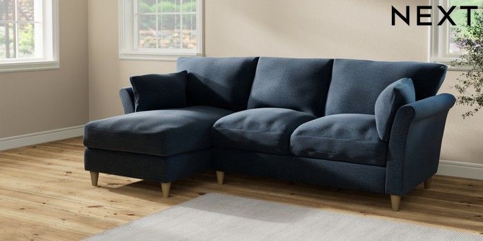 7.2.10 Hartley Relaxed Sit Medium Sofa Chaise - Left Hand Ripple Chenille Dark Blue Low Conical - Light | Made Click here to use our website with more accessibility support, for example screen readers