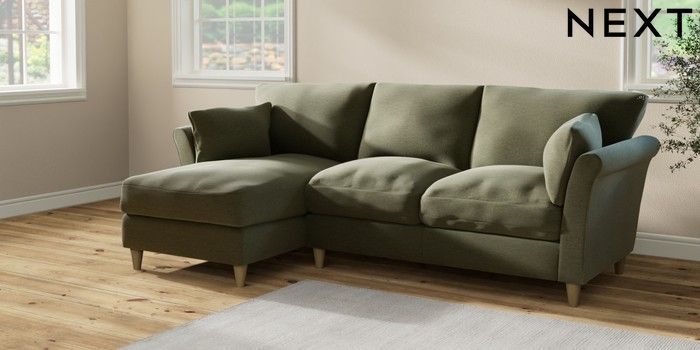 7.2.10 Hartley Relaxed Sit Medium Sofa Chaise - Left Hand Ripple Chenille Mid Moss Green Low Conical - Light | Made Click here to use our website with more accessibility support, for example screen readers