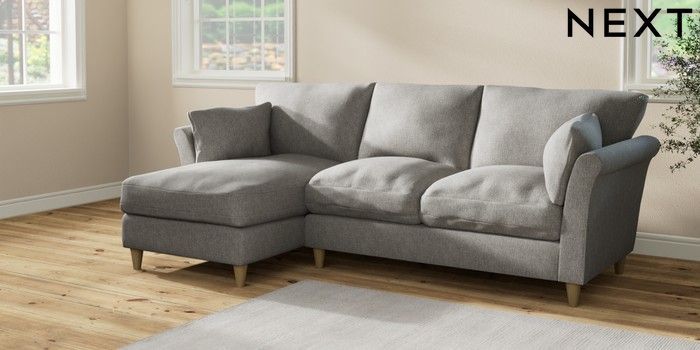 7.2.10 Hartley Relaxed Sit Medium Sofa Chaise - Left Hand Tweedy Chenille Mid Grey Low Conical - Light | Made Click here to use our website with more accessibility support, for example screen readers