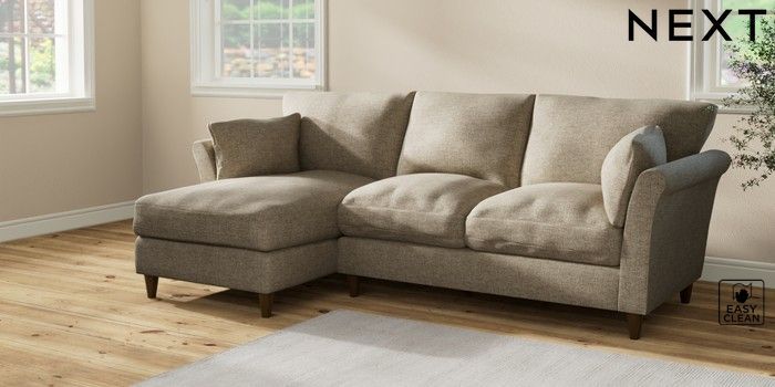 7.2.10 Hartley Relaxed Sit Medium Sofa Chaise - Left Hand Woven Chenille Easy Clean Mid Natural Low Conical - Mid | Made Click here to use our website with more accessibility support, for example screen readers