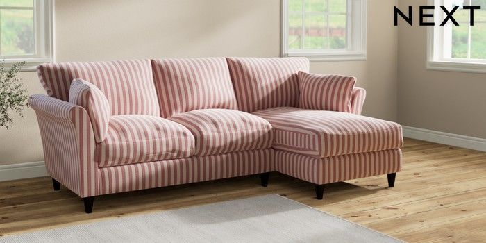 7.2.10 Hartley Relaxed Sit Medium Sofa Chaise - Right Hand Bold Chenille Stripe Dark Pink Low Conical - Dark | Made Click here to use our website with more accessibility support, for example screen readers