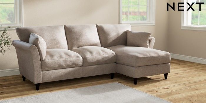 7.2.10 Hartley Relaxed Sit Medium Sofa Chaise - Right Hand Boucle Chenille Light Natural Low Conical - Dark | Made Click here to use our website with more accessibility support, for example screen readers