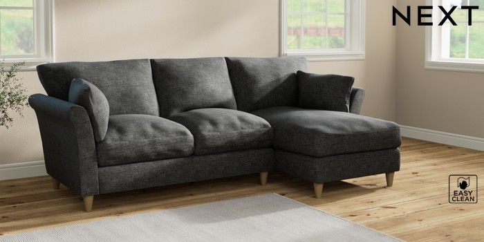 7.2.10 Hartley Relaxed Sit Medium Sofa Chaise - Right Hand Boucle Weave Easy Clean Charcoal Grey Low Conical - Light | Made Click here to use our website with more accessibility support, for example screen readers