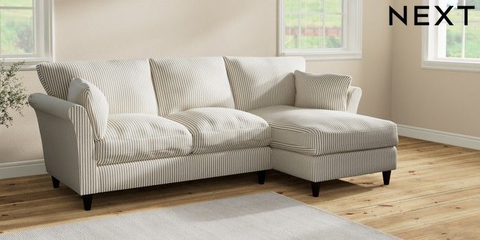 7.2.10 Hartley Relaxed Sit Medium Sofa Chaise - Right Hand Chenille Stripe Moss Green Low Conical - Dark | Made Click here to use our website with more accessibility support, for example screen readers