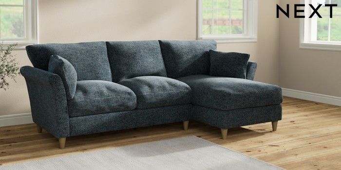 7.2.10 Hartley Relaxed Sit Medium Sofa Chaise - Right Hand Chunky Chenille Dark Navy Blue Low Conical - Light | Made Click here to use our website with more accessibility support, for example screen readers