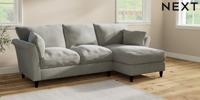 7.2.10 Hartley Relaxed Sit Medium Sofa Chaise - Right Hand Chunky Chenille Light Grey Low Conical - Dark | Made Click here to use our website with more accessibility support, for example screen readers