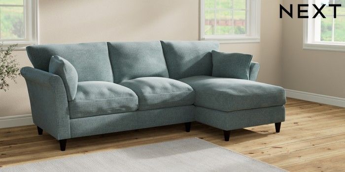 7.2.10 Hartley Relaxed Sit Medium Sofa Chaise - Right Hand Chunky Chenille Light Teal Green Low Conical - Dark | Made Click here to use our website with more accessibility support, for example screen readers