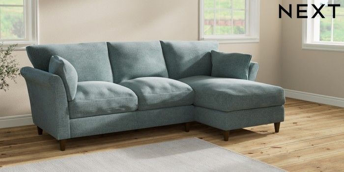 7.2.10 Hartley Relaxed Sit Medium Sofa Chaise - Right Hand Chunky Chenille Light Teal Green Low Conical - Mid | Made Click here to use our website with more accessibility support, for example screen readers