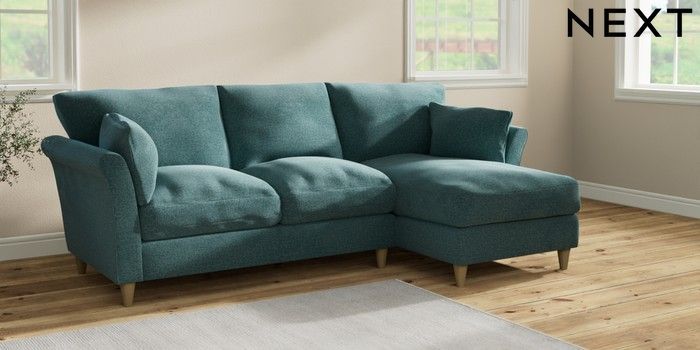 7.2.10 Hartley Relaxed Sit Medium Sofa Chaise - Right Hand Chunky Chenille Mid Teal Green Low Conical - Light | Made Click here to use our website with more accessibility support, for example screen readers