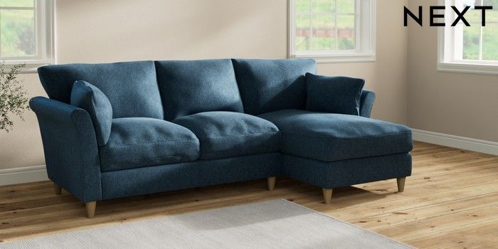 7.2.10 Hartley Relaxed Sit Medium Sofa Chaise - Right Hand Cotswold Chenille Dark Blue Low Conical - Light | Made Click here to use our website with more accessibility support, for example screen readers