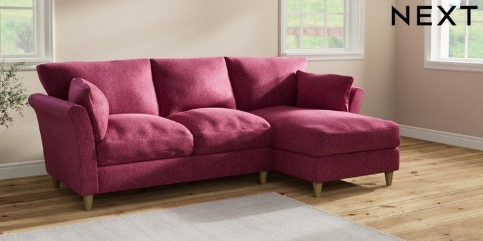 7.2.10 Hartley Relaxed Sit Medium Sofa Chaise - Right Hand Cotswold Chenille Dark Raspberry Pink Low Conical - Light | Made Click here to use our website with more accessibility support, for example screen readers