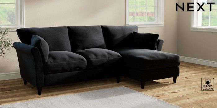 7.2.10 Hartley Relaxed Sit Medium Sofa Chaise - Right Hand Fine Chenille Easy Clean Black Low Conical - Dark | Made Click here to use our website with more accessibility support, for example screen readers