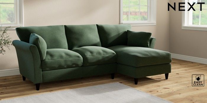 7.2.10 Hartley Relaxed Sit Medium Sofa Chaise - Right Hand Fine Chenille Easy Clean Mid Khaki Green Low Conical - Dark | Made Click here to use our website with more accessibility support, for example screen readers