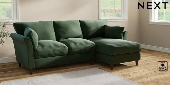 7.2.10 Hartley Relaxed Sit Medium Sofa Chaise - Right Hand Fine Chenille Easy Clean Mid Khaki Green Low Conical - Mid | Made Click here to use our website with more accessibility support, for example screen readers