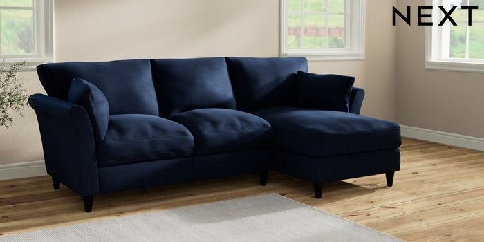 7.2.10 Hartley Relaxed Sit Medium Sofa Chaise - Right Hand Luxe Chenille Navy Blue Low Conical - Dark | Made Click here to use our website with more accessibility support, for example screen readers