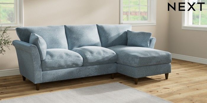 7.2.10 Hartley Relaxed Sit Medium Sofa Chaise - Right Hand Plush Chenille Light Blue Low Conical - Mid | Made Click here to use our website with more accessibility support, for example screen readers