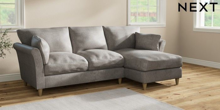 7.2.10 Hartley Relaxed Sit Medium Sofa Chaise - Right Hand Plush Chenille Light Grey Low Conical - Light | Made Click here to use our website with more accessibility support, for example screen readers
