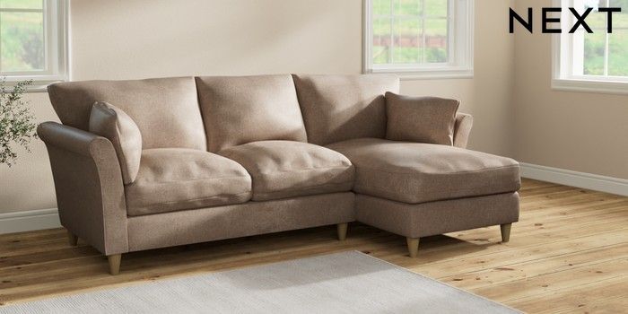 7.2.10 Hartley Relaxed Sit Medium Sofa Chaise - Right Hand Plush Chenille Mid Natural Low Conical - Light | Made Click here to use our website with more accessibility support, for example screen readers