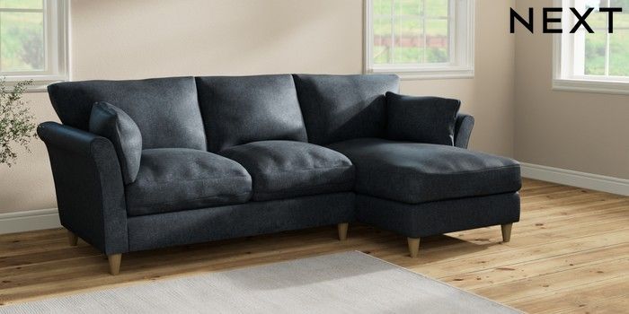 7.2.10 Hartley Relaxed Sit Medium Sofa Chaise - Right Hand Plush Chenille Slate Blue Low Conical - Light | Made Click here to use our website with more accessibility support, for example screen readers