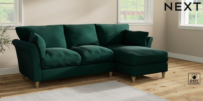 7.2.10 Hartley Relaxed Sit Medium Sofa Chaise - Right Hand Plush Velvet Easy Clean Bottle Green Low Conical - Light | Made Click here to use our website with more accessibility support, for example screen readers