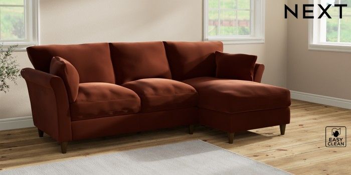 7.2.10 Hartley Relaxed Sit Medium Sofa Chaise - Right Hand Plush Velvet Easy Clean Ginger Orange Low Conical - Mid | Made Click here to use our website with more accessibility support, for example screen readers