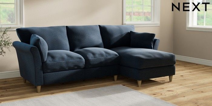 7.2.10 Hartley Relaxed Sit Medium Sofa Chaise - Right Hand Ripple Chenille Dark Blue Low Conical - Light | Made Click here to use our website with more accessibility support, for example screen readers