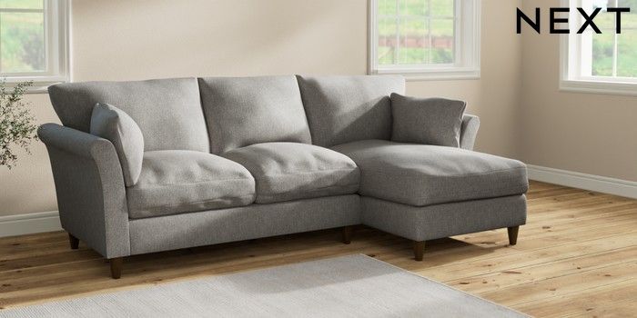 7.2.10 Hartley Relaxed Sit Medium Sofa Chaise - Right Hand Tweedy Chenille Mid Grey Low Conical - Mid | Made Click here to use our website with more accessibility support, for example screen readers