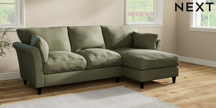 7.2.10 Hartley Relaxed Sit Medium Sofa Chaise - Right Hand Tweedy Chenille Mid Moss Green Low Conical - Dark | Made Click here to use our website with more accessibility support, for example screen readers