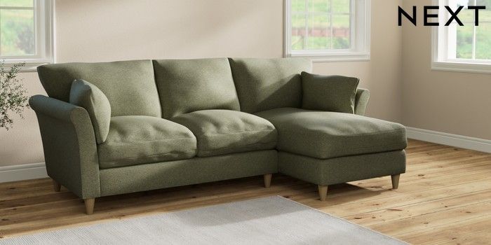 7.2.10 Hartley Relaxed Sit Medium Sofa Chaise - Right Hand Tweedy Chenille Mid Moss Green Low Conical - Light | Made Click here to use our website with more accessibility support, for example screen readers