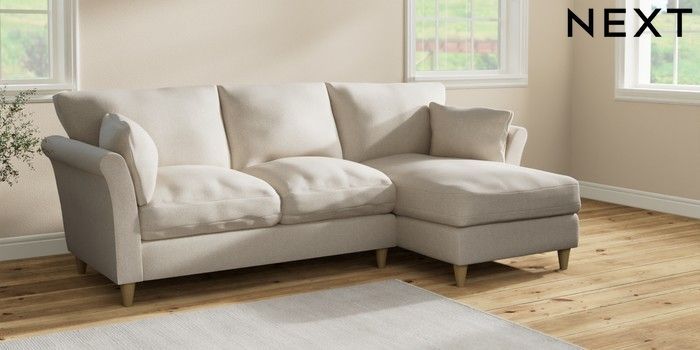 7.2.10 Hartley Relaxed Sit Medium Sofa Chaise - Right Hand Tweedy Chenille Oyster Low Conical - Light | Made Click here to use our website with more accessibility support, for example screen readers