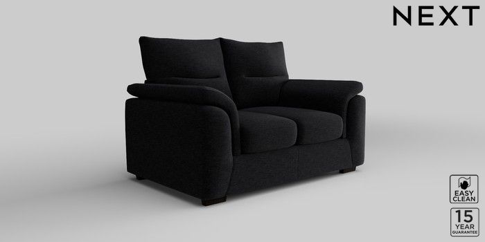 7.2.10 Hayden Highback 2 Seater Small Sofa Fine Chenille Easy Clean Black Slim Block - Dark | Made Click here to use our website with more accessibility support, for example screen readers