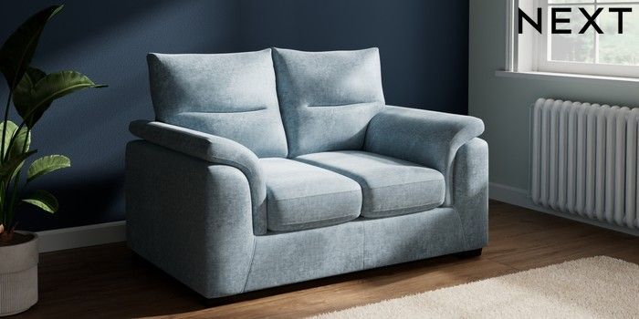 7.2.10 Hayden Highback 2 Seater Small Sofa Plush Chenille Light Blue Slim Block - Dark | Made Click here to use our website with more accessibility support, for example screen readers