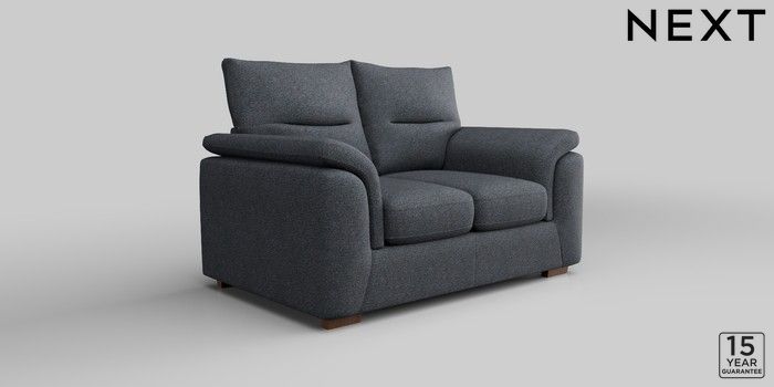 7.2.10 Hayden Highback 2 Seater Small Sofa Tweedy Chenille Navy Blue Slim Block - Mid | Made Click here to use our website with more accessibility support, for example screen readers