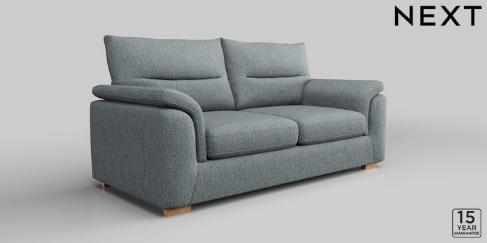 7.2.10 Hayden Highback 3 Seater Small Sofa Chunky Weave Mid Blue Slim Block - Light | Made Click here to use our website with more accessibility support, for example screen readers