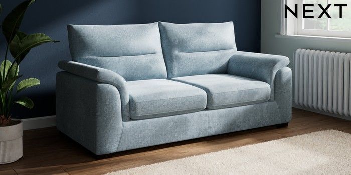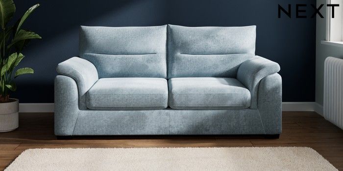 7.2.10 Hayden Highback 3 Seater Small Sofa Plush Chenille Light Blue Slim Block - Dark | Made Click here to use our website with more accessibility support, for example screen readers