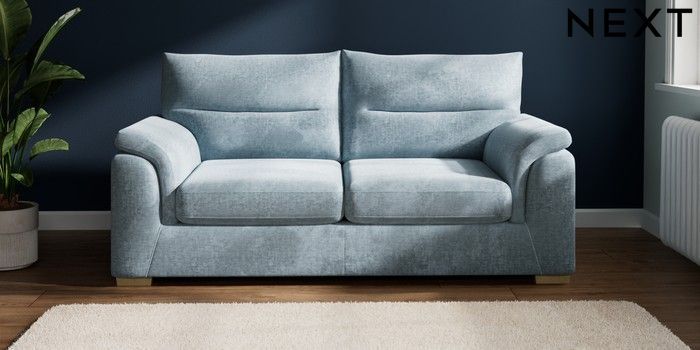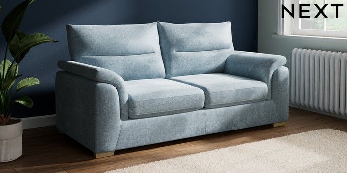 7.2.10 Hayden Highback 3 Seater Small Sofa Plush Chenille Light Blue Slim Block - Light | Made Click here to use our website with more accessibility support, for example screen readers