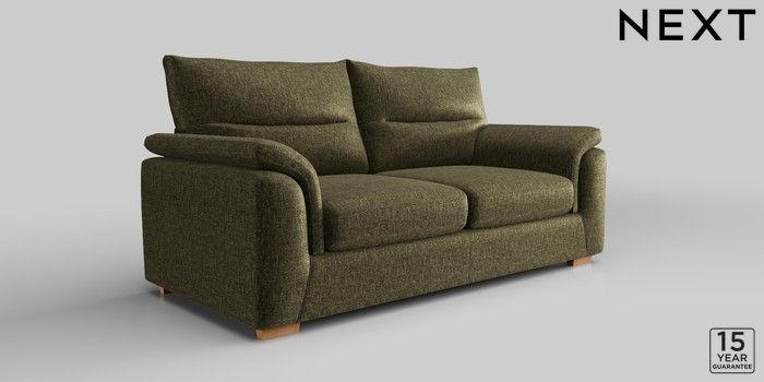 7.2.10 Hayden Highback 3 Seater Small Sofa Plush Chenille Moss Green Slim Block - Light | Made Click here to use our website with more accessibility support, for example screen readers
