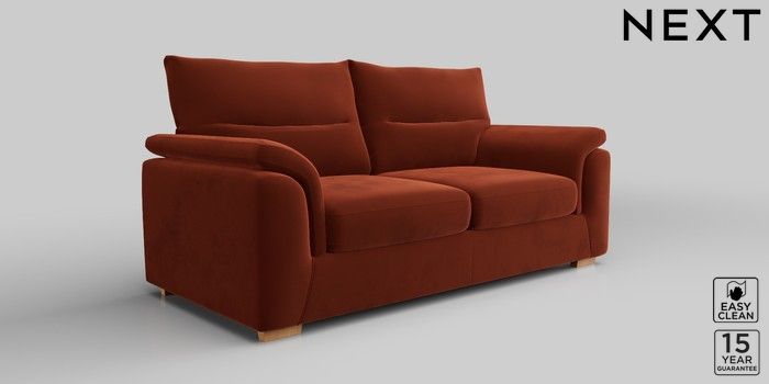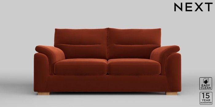7.2.10 Hayden Highback 3 Seater Small Sofa Plush Velvet Easy Clean Ginger Orange Slim Block - Light | Made Click here to use our website with more accessibility support, for example screen readers