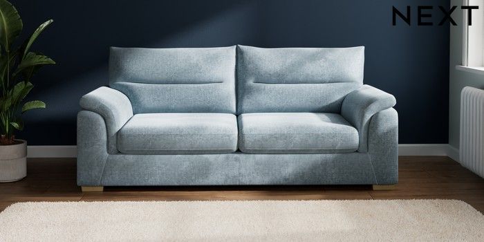 7.2.10 Hayden Highback 3 Seater Sofa Plush Chenille Light Blue Slim Block - Light | Made Click here to use our website with more accessibility support, for example screen readers