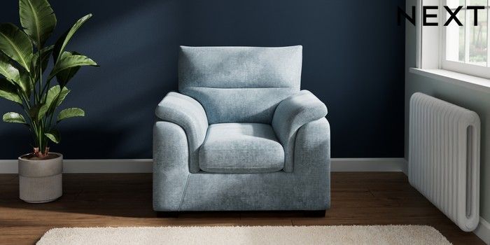 7.2.10 Hayden Highback Armchair Plush Chenille Light Blue Small Slim Block - Dark | Made Click here to use our website with more accessibility support, for example screen readers
