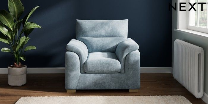 7.2.10 Hayden Highback Armchair Plush Chenille Light Blue Small Slim Block - Light | Made Click here to use our website with more accessibility support, for example screen readers