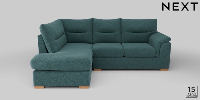 7.2.10 Hayden Highback Medium Corner Chaise - Left Hand Chunky Chenille Mid Teal Green Slim Block - Light | Made Click here to use our website with more accessibility support, for example screen readers