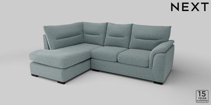 7.2.10 Hayden Highback Medium Corner Chaise - Left Hand Chunky Marl Mid Blue Slim Block - Dark | Made Click here to use our website with more accessibility support, for example screen readers