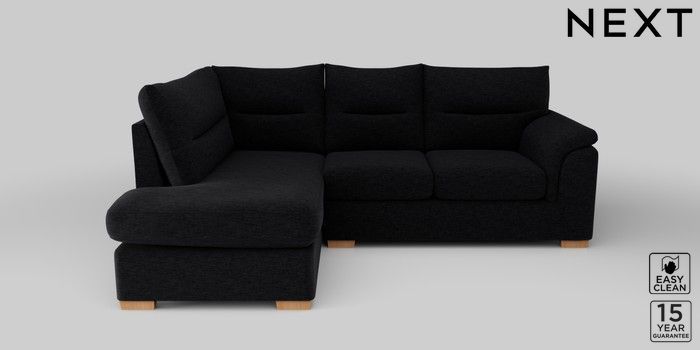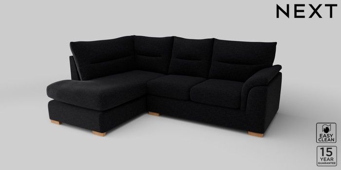 7.2.10 Hayden Highback Medium Corner Chaise - Left Hand Fine Chenille Easy Clean Black Slim Block - Light | Made Click here to use our website with more accessibility support, for example screen readers