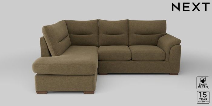 7.2.10 Hayden Highback Medium Corner Chaise - Left Hand Fine Chenille Easy Clean Dark Moss Green Slim Block - Mid | Made Click here to use our website with more accessibility support, for example screen readers